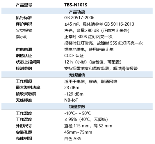 为进一步满足市场多样化需求,优化消防解决方案,雷竞技ray官网科技NB-IoT新品烟感TBS-N101S正式投放市场。 TBS-N101S是独立式无线感烟报警器,基于NB-IoT标准,具备远距离无线通信能力,无需布线、即买即用;可同时检测烟雾浓度和温度,提升检测准确率;采用新方案设计,有效确保产品电池使用寿命更长;支持声光、电话、短信、平台等多种报警方式,有效预防火灾发生。